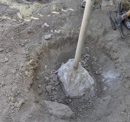 In spite of a pilot hole that I made with a rebar, driving the ground spike in felt like negotiating with the earth itself. It resisted, unyielding.
