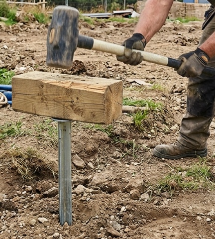 I used a wooden 4×4 block to protect the metal sleeve from sledgehammer damage. The hammer met the wood block with great force, and the block split. At first, I blamed my aim, my strength. Then I noticed I had oriented the wood grain on end to the spike. End-grain shattered under the spike’s sharp edges. I cut another 4×4 and placed the cross-grain facing the spike. The grain absorbed and distributed the impact.