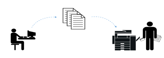 to the print driver, to the NIC (Network Interface Controller), over WiFi or ethernet to the router, then from the router to the printer NIC.